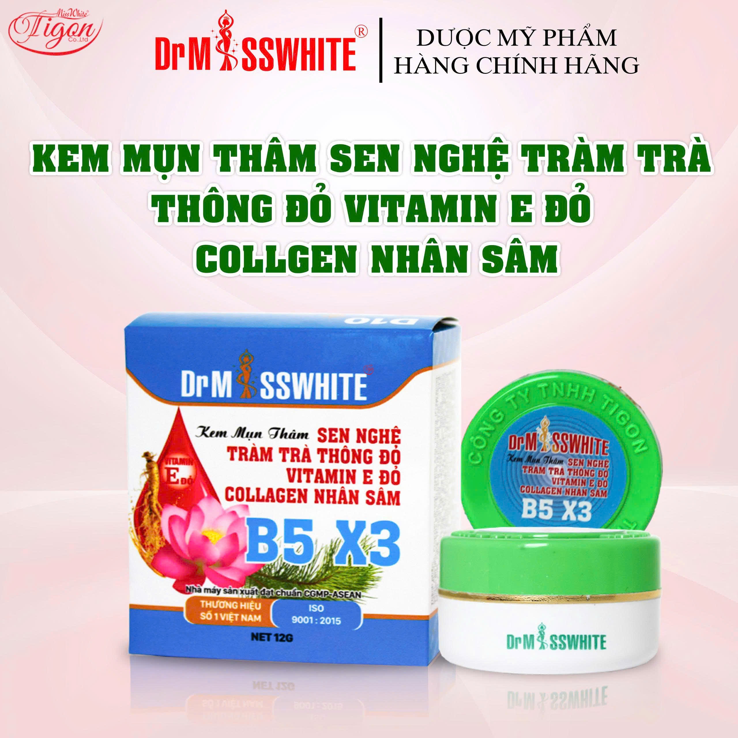 Thành phần : Chiết xuất lá thông đỏ , vitamin E đỏ , nghệ , nhân sâm , collagen , tinh dầu nghệ , mật ong lên men , tràm trà , hoa sen , dịch nhầy ốc sên , trà xanh , rau má , vitamin E , vitamin B3 , vitamin B5 .